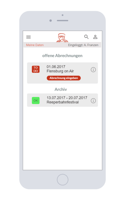 Nach Abschluss eines Events meldet der Teilnehmer selbständig seine Umsätze. Die Abrechnung erfolgt im Nachgang durch ein eigens dafür entwickeltes Abrechnungsportal.